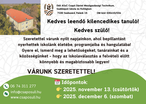 Mezőgazdasági technikus - Felnőttképzés!